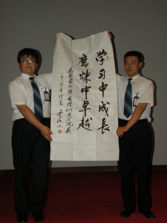 上圖:賈清文理事長為國際·AST商學(xué)院題詞