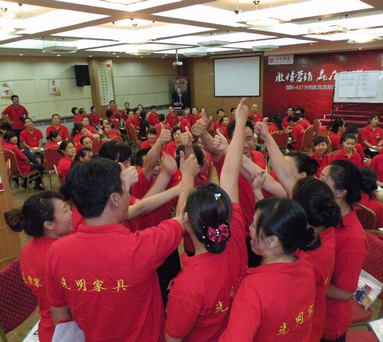 2010年9月16日2010年光明集團(tuán)股份有限公司激情營銷 贏在終端國際•AST專業(yè)百零三屆暨光明家具首期訓(xùn)練營在北京北農(nóng)酒店完美落幕!來自光明家具全國分公司的店長、導(dǎo)購共170多名學(xué)員參加了此次訓(xùn)練營。光明集團(tuán)股份有限公司董事長張金鑄先生在訓(xùn)練營動員會上面講到,集團(tuán)要發(fā)展,一定要靠學(xué)習(xí),學(xué)習(xí)一定要找專業(yè)的家具培訓(xùn)公司。這次學(xué)員們一定要在這次的培訓(xùn)大會上面學(xué)到知識,運(yùn)用到家具銷售和店面管理當(dāng)中去。并對北京國富縱橫管理咨詢有限公司給予了極高的評價(jià)。光明集團(tuán)電子商務(wù)副總經(jīng)理王淑娟女士在開班典禮上面講到,我們光明人要做到光明家具團(tuán)結(jié)一致、光明集團(tuán)永爭專業(yè),學(xué)習(xí)要有學(xué)習(xí)的態(tài)度,如果光明拒絕學(xué)習(xí),那么光明的競爭對手永遠(yuǎn)不會。