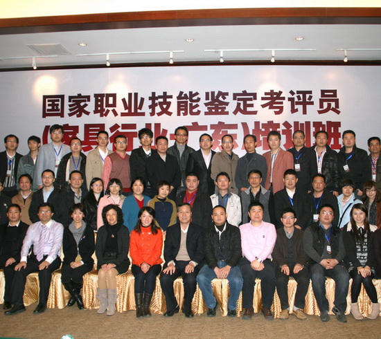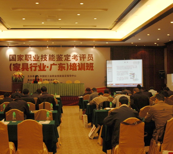 2010年12月17日國家職業技能鑒定考評員(家具行業·廣東)培訓班在廣東東莞厚街嘉華大酒店順利召開,來自廣東、江蘇各地家具協會、家具企業、家具林業院校共44名學員參加了此次培訓班,特別感謝中國家具協會、廣東東莞名家具俱樂部、廣東省家具協會和廣州市家具協會和江蘇農林職業技術學院,廣東順德龍江職業技術學校、廣東順德研發院、廣東東莞市大嶺山職業技術學校、廣東東莞國際名家具設計研發院、聯邦家私集團、廣東東莞市大嶺山家具協會、廣東厚街專業技術學校等10余家家具協會和企業的鼎力支持和大力幫助。