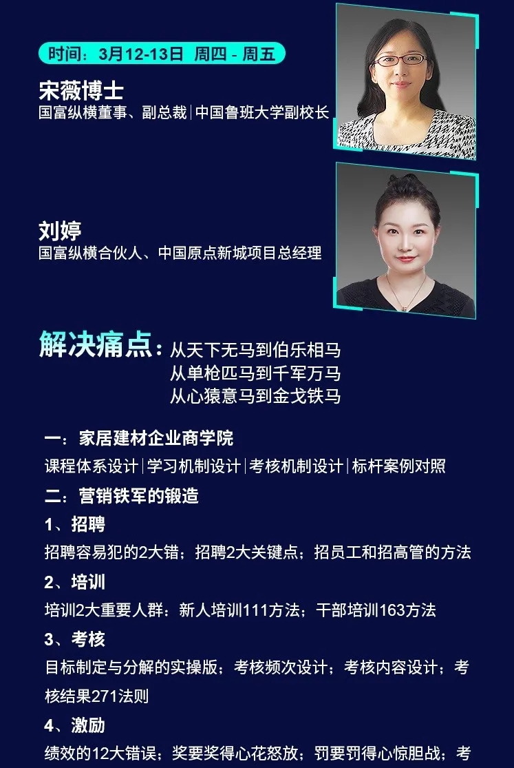 為了幫助家居企業在2020年逆勢突圍,中國魯班大學&國富縱橫重磅推出年度大課——《國富商道》,這是一堂2020家居建材老板必上的增長課,專門針對經銷商老板、中高管和生產企業老板、中高管的專屬課程。自3月2日起至3月22日,中國魯班大學&國富縱橫將通過21天的直播大課為您帶來大變局中的增長戰略,品牌逆勢的運營之道、營銷模式的突破之道、組織強大的鐵軍之道、用戶裂變的增長之道、精細管理的經營之道,一切精彩盡在中國大家居教育平臺,敬請期待!